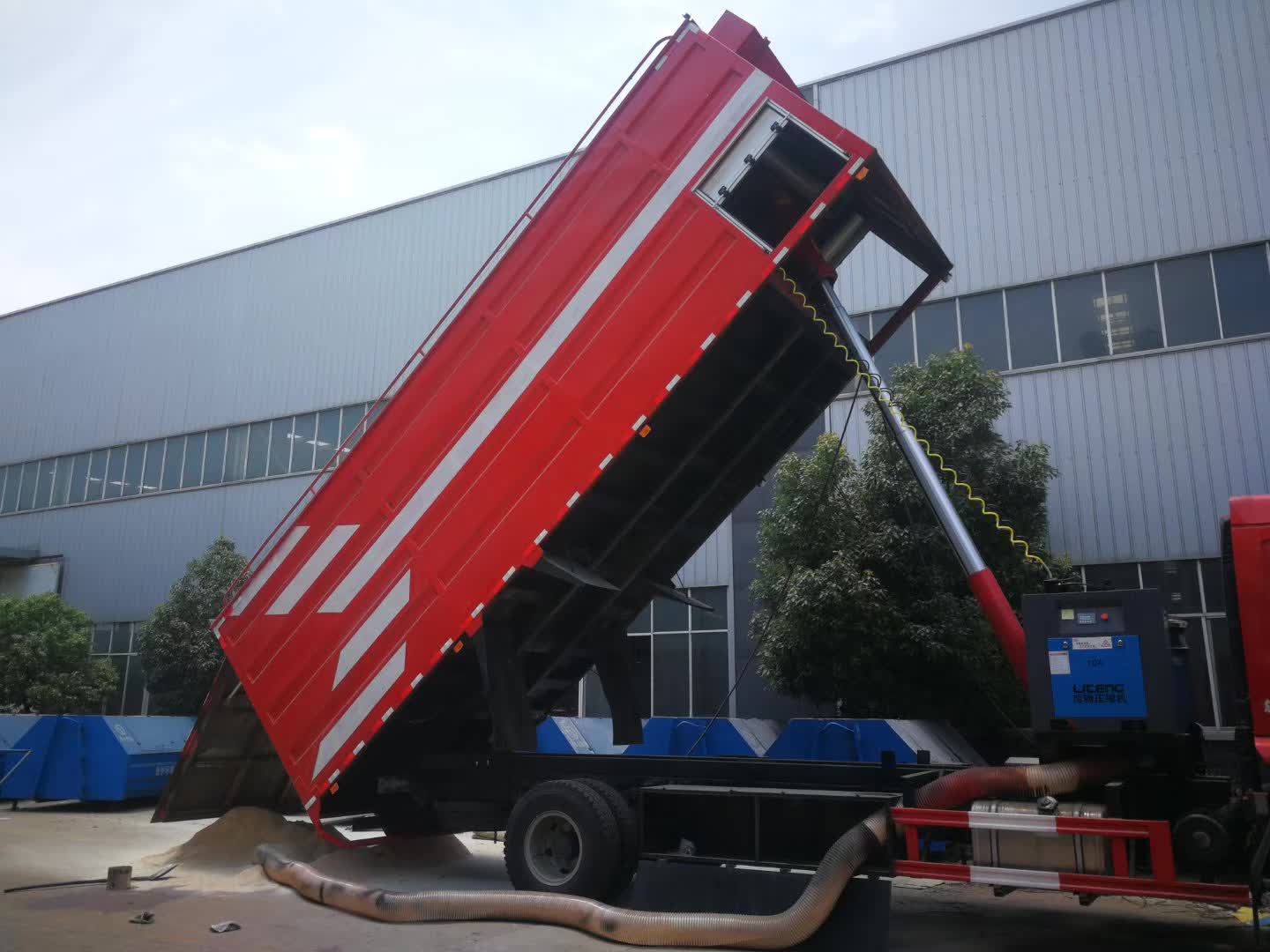 鋸末收集運輸車,柳汽乘龍底盤,玉柴180馬力,軸距5700,法斯特8檔,10.00鋼絲胎,散裝糧食運輸車公告,整車尺寸10020*2500*3900,總質(zhì)量18000kg,容積36立方米,液壓裝置卸料,脈沖除塵防爆系統(tǒng)